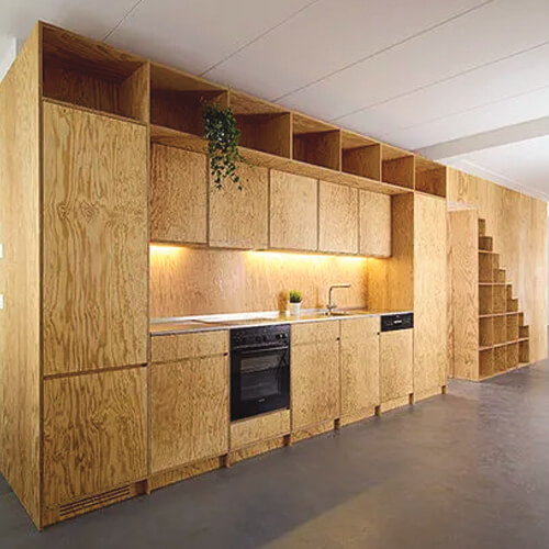 - تخته سه لایی (Plywood): تخته سه لایی از لایههای چوب طبیعی ساخته میشود و به همین دلیل مقاومتر و پایدارتر از بسیاری دیگر از انواع تختههاست. این تختهها معمولاً به دلیل ساختار لایهای خود بسیار محکم و مقاوم به فشار هستند.